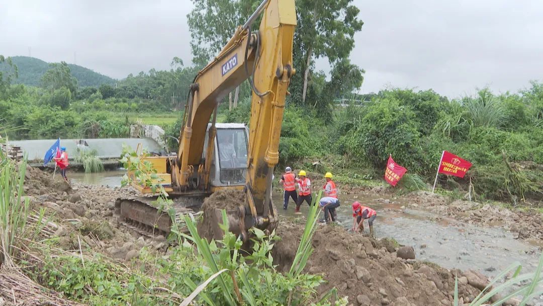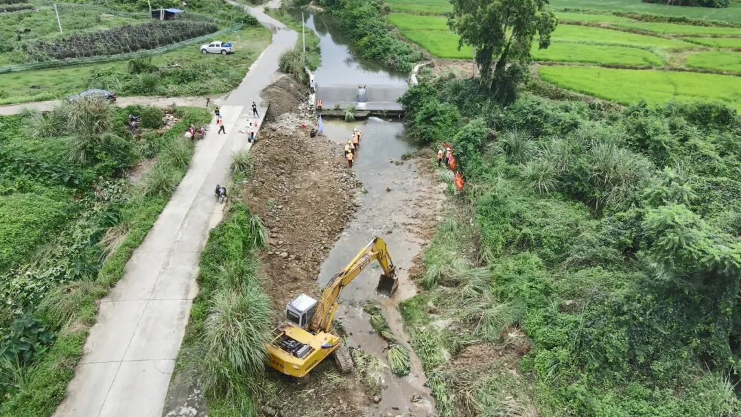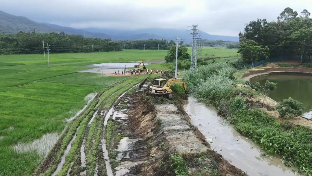 溪頭鎮(zhèn)雙水村委會的干部以及企業(yè)員工在現(xiàn)場共同搶險救災(zāi),扛起沙包封堵堤圍缺口,利用挖掘機(jī)疏通河道,幫助農(nóng)田排水,力爭盡快消除暴雨災(zāi)害影響。